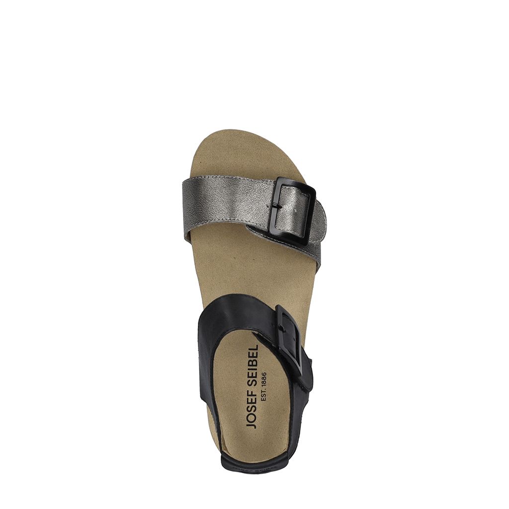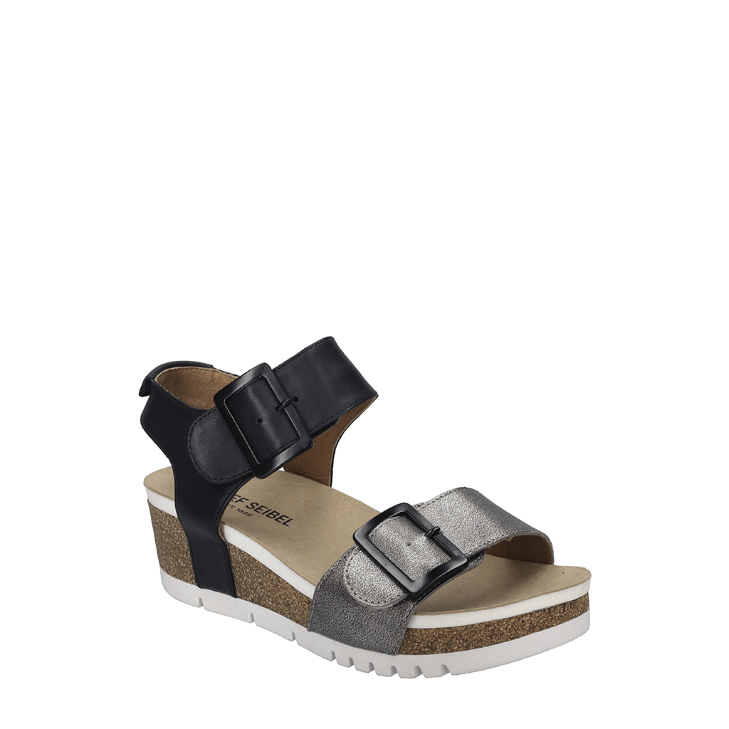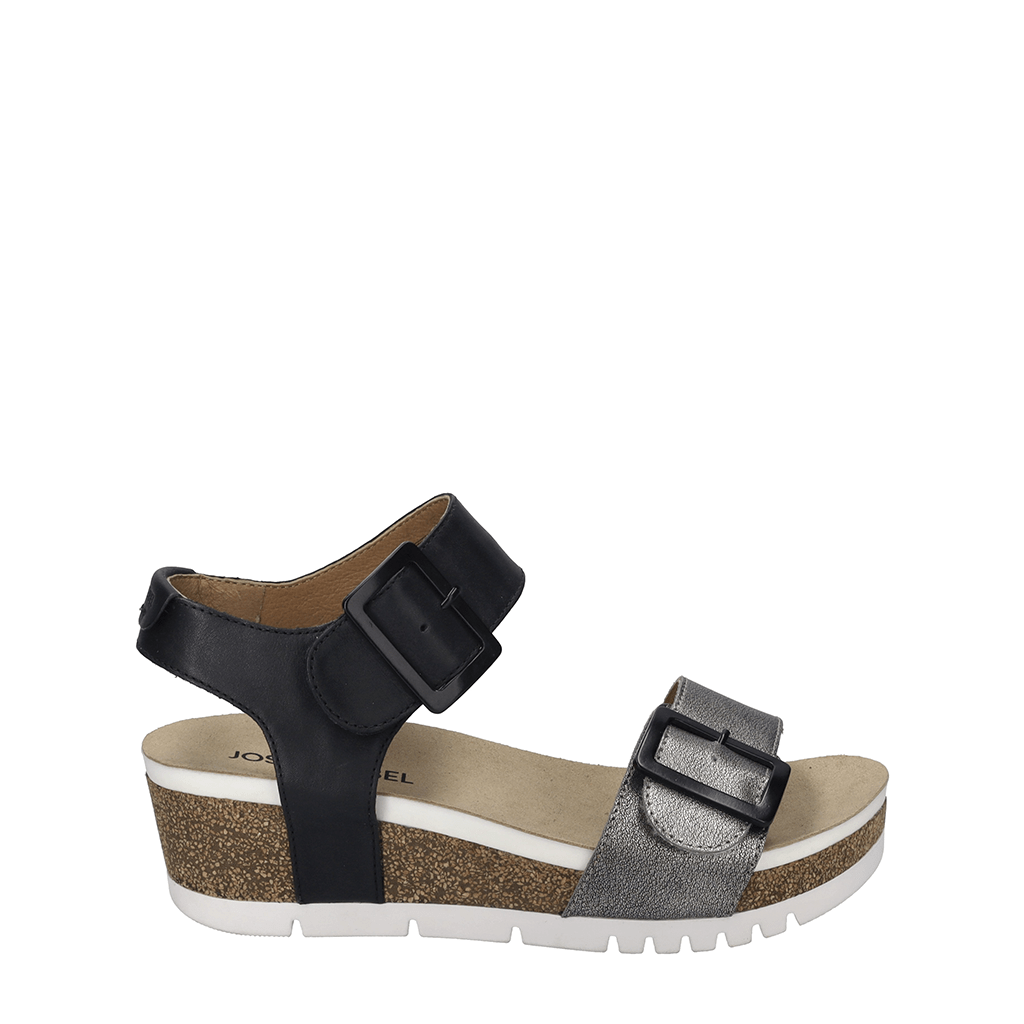 Step confidently into elevated comfort with the JOSEF SEIBEL Quinn 02, a stylish wedge sandal thoughtfully designed for women who never compromise on comfort or elegance. This lightweight sandal features a mix of premium leather and metallic leather uppers, delivering a sophisticated touch that transitions effortlessly from daywear to evening outings.