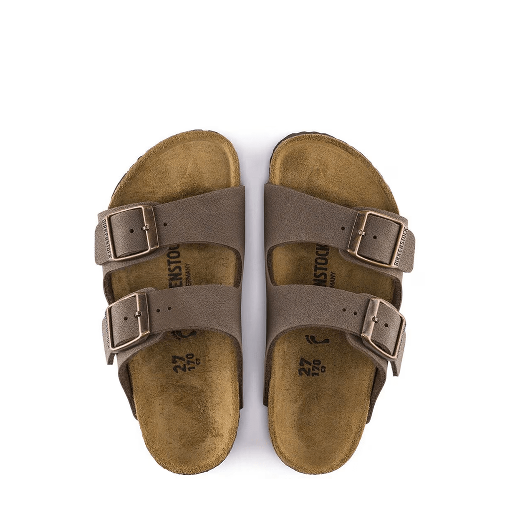 The Birkenstock Arizona Narrow Fit for Kids offers legendary comfort and support in a design made just for smaller feet. The contoured cork-latex footbed promotes proper foot development and provides all-day stability, while the lightweight EVA outsole absorbs impact and keeps kids on the move. Durable Birko-Flor uppers are soft, easy to clean, and gentle on skin, making these sandals perfect for warm weather adventures, family outings, or everyday play. Adjustable metal buckles ensure a secure fit as kids grow, and the suede footbed lining creates a cozy feel for barefoot wear. Versatile, comfortable, and designed to last these sandals are the perfect choice for spring and summer fun.