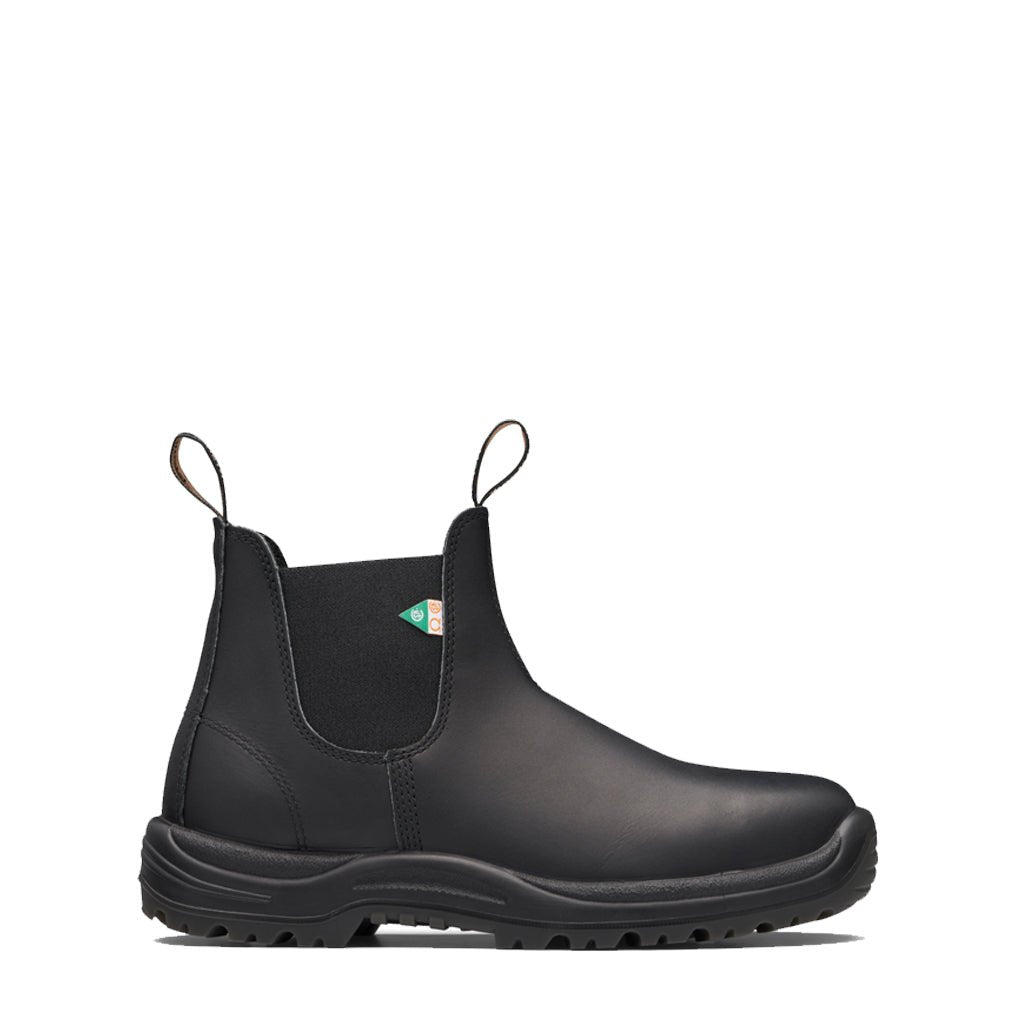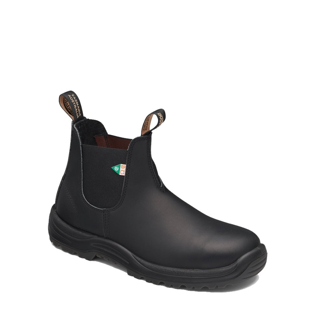 The Blundstone Work & Safety 163 CSA in black is built for hardworking individuals who need dependable protection and everyday comfort. Made from sturdy black leather, this unisex work boot offers long-lasting durability along with CSA-approved steel toe protection, making it a trusted choice for construction sites, farm work, shop environments, and other tough conditions. Its pull-on Chelsea style provides easy, no-fuss wear, allowing you to get moving quickly without sacrificing a secure fit.