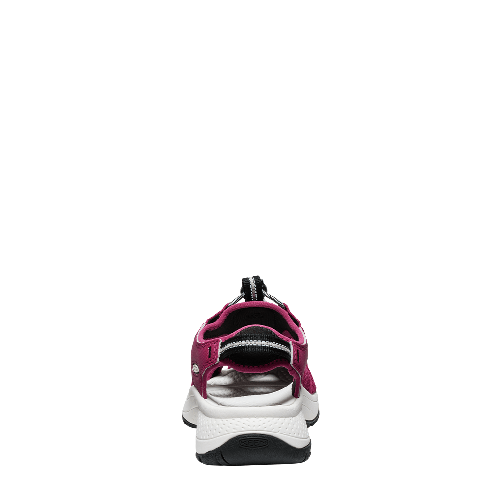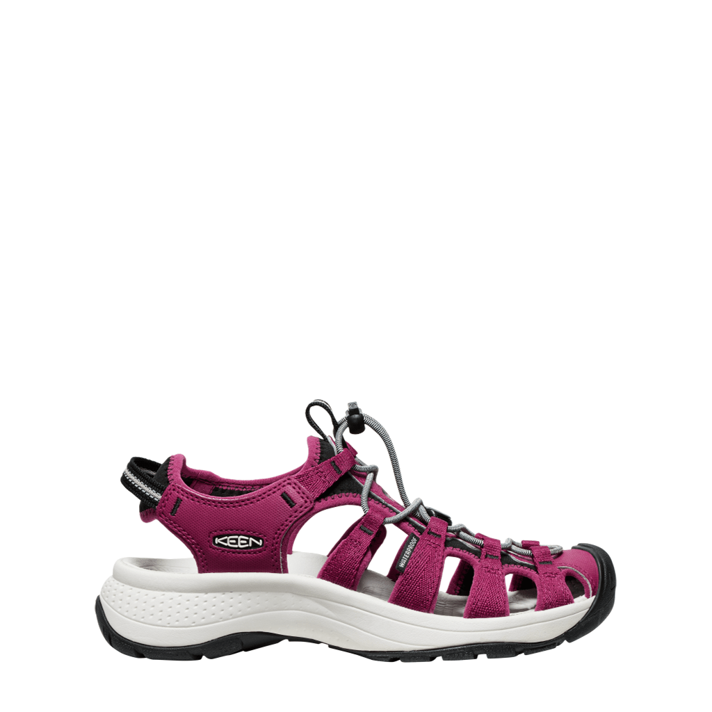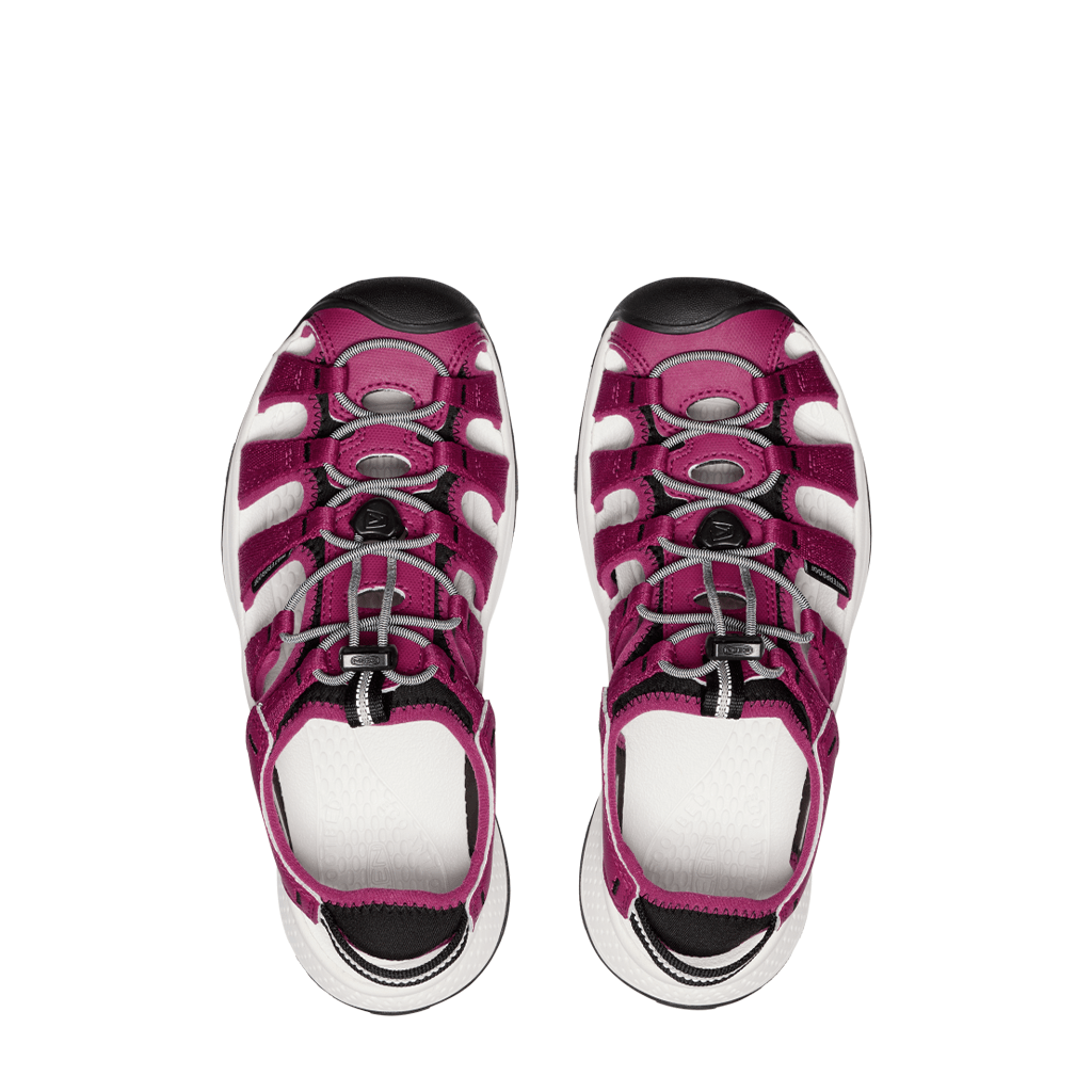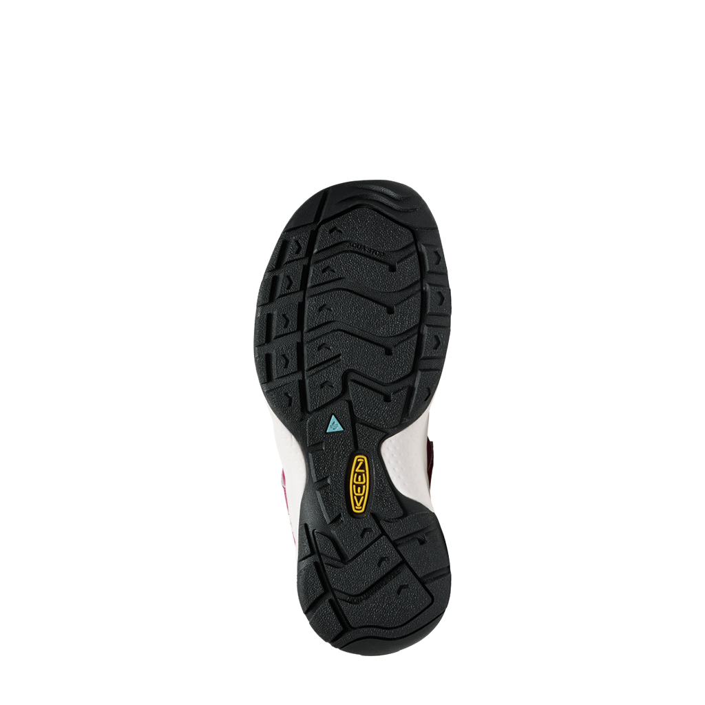Made to move from trail to town, this original women's hybrid sandal blends rugged performance with versatile comfort and an eco-forward design. Engineered specifically for a women's fit and thoughtfully crafted by women designers, it features a snug contoured fit, lightweight cushioning, and a Keen protect toe bumper for extra confidence on uneven ground. Ideal for warm-weather summer outings and light outdoor adventures, the secure bungee cinch and quick-dry lining make it easy to slip on and go. The Aquagrip rubber outsole with Aqua Stop zonal siping ensures stable footing even on slick surfaces, while recycled P.E.T. plastic components and Eco Anti-Odor technology reduce environmental impact and keep things fresh all day.