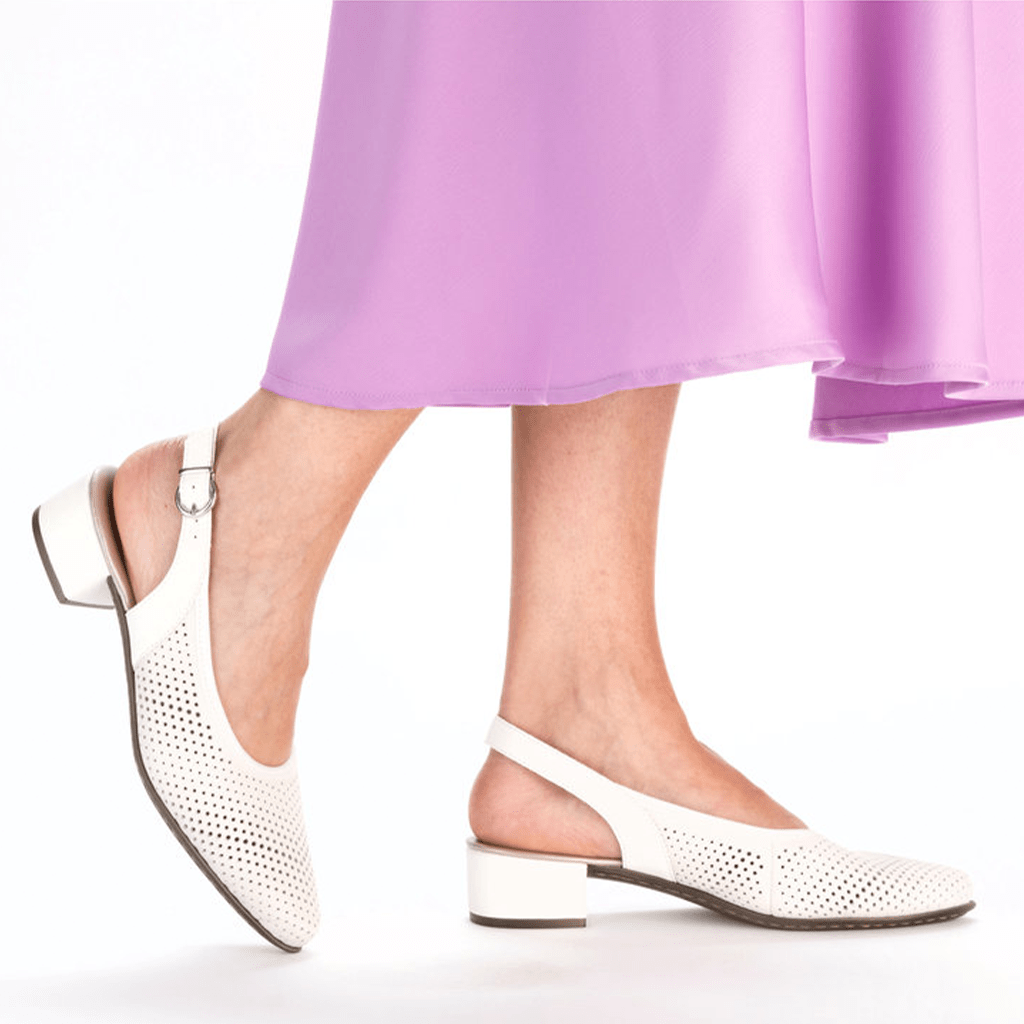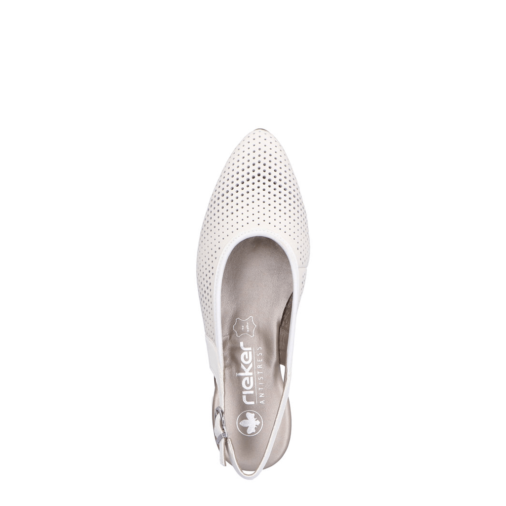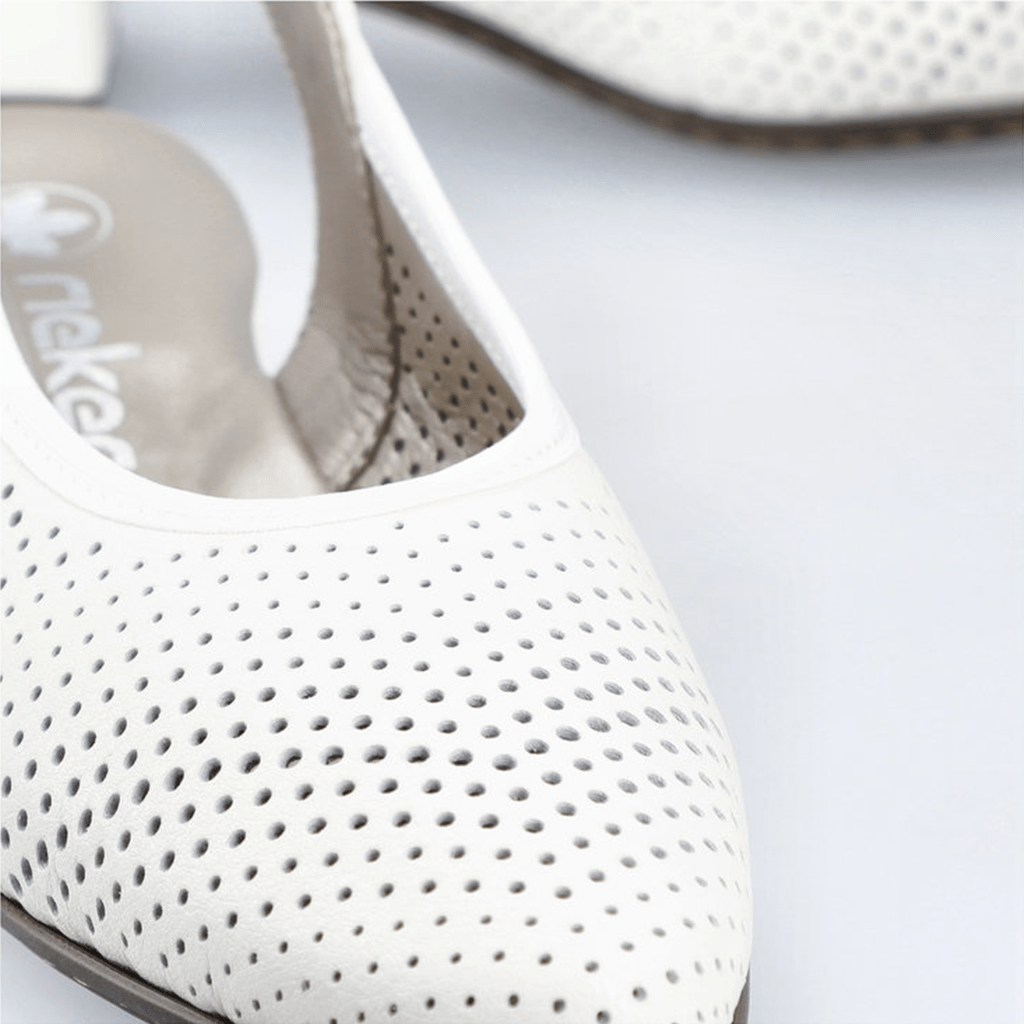 Blending refined style with breathable ease, the Rieker leather shoe for spring and summer. Designed with delicate perforated detailing, this chic yet functional shoe allows air to flow freely keeping your feet cool on warmer days. The adjustable buckle strap ensures a tailored fit, while the low, wide-profile heel offers reliable support. With Rieker's Antistress technology, every step is cushioned and light, making this shoe a stylish option that feels as good as it looks.